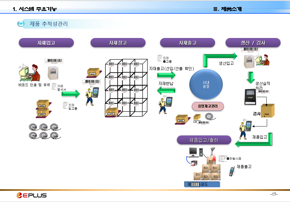 바코드를 이용하여 제품별 생산(LOT) 이력을 파악