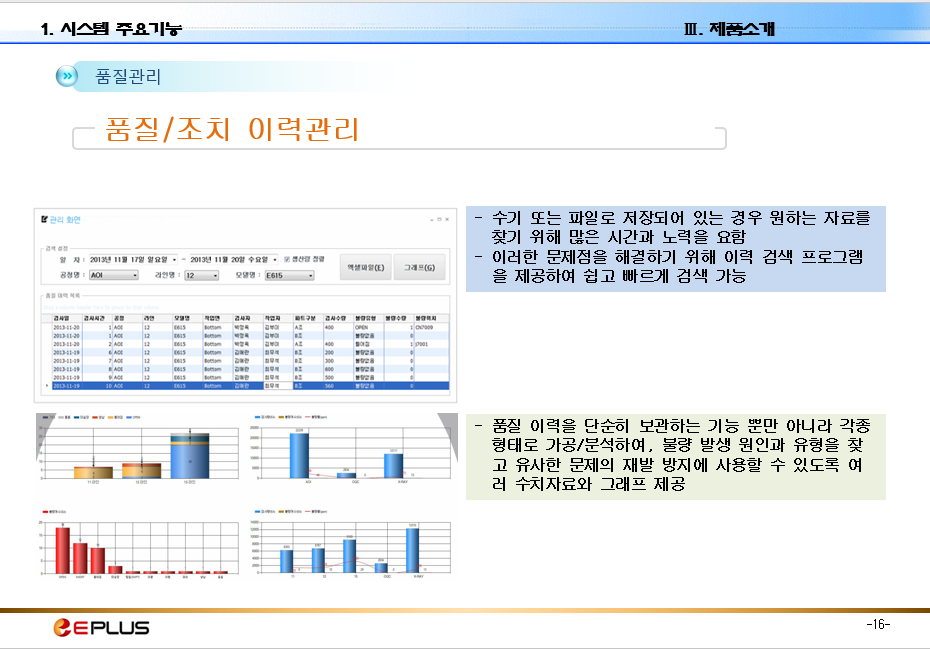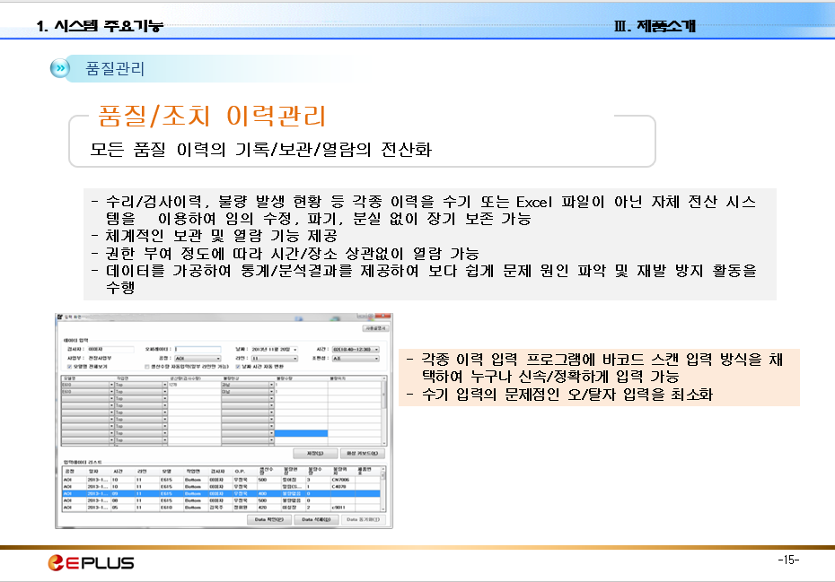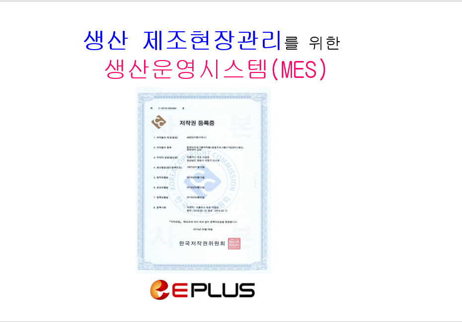 MES 소개 자료로 EPLUS 제품을 확인할 수 있고 MES 기본 기능 등을 참조할 수 있습니다.