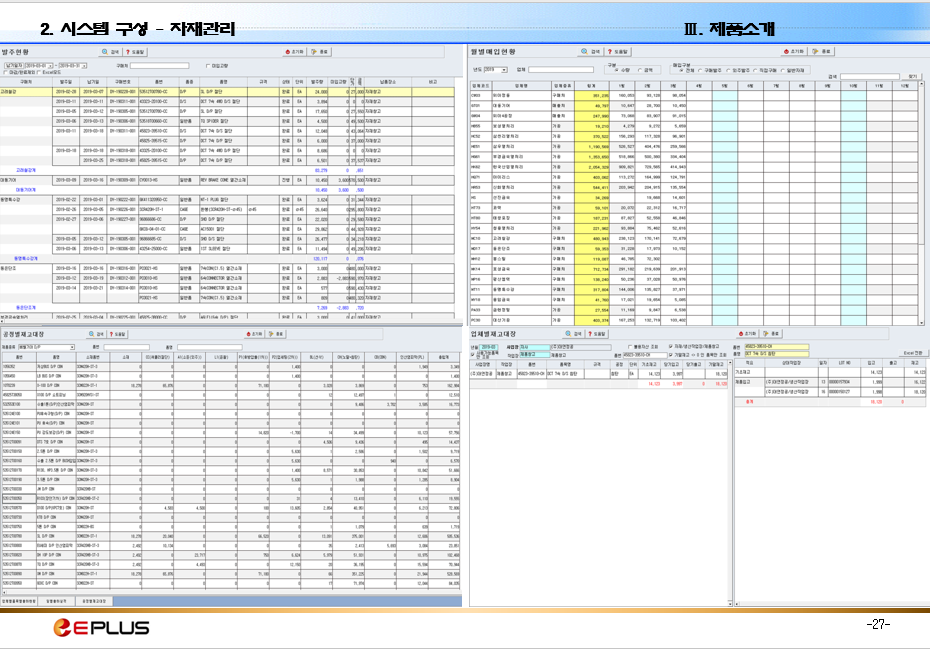 발주, 입고, 자재 재고 등 자재관리 업무 지원