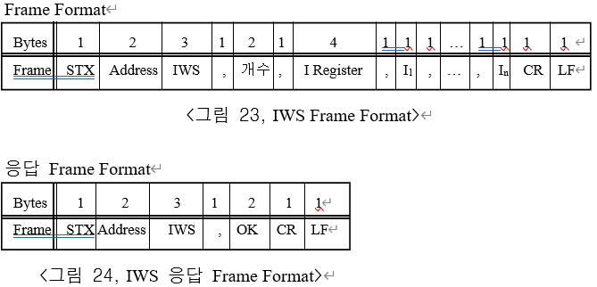 IWS Command는 연속된 I Register 값을 Write 할 수 있는 Command로, Frame 상에는 Write 하고자 하는 개수와 시작 I Register의 번호, Write Data를 설정한다.