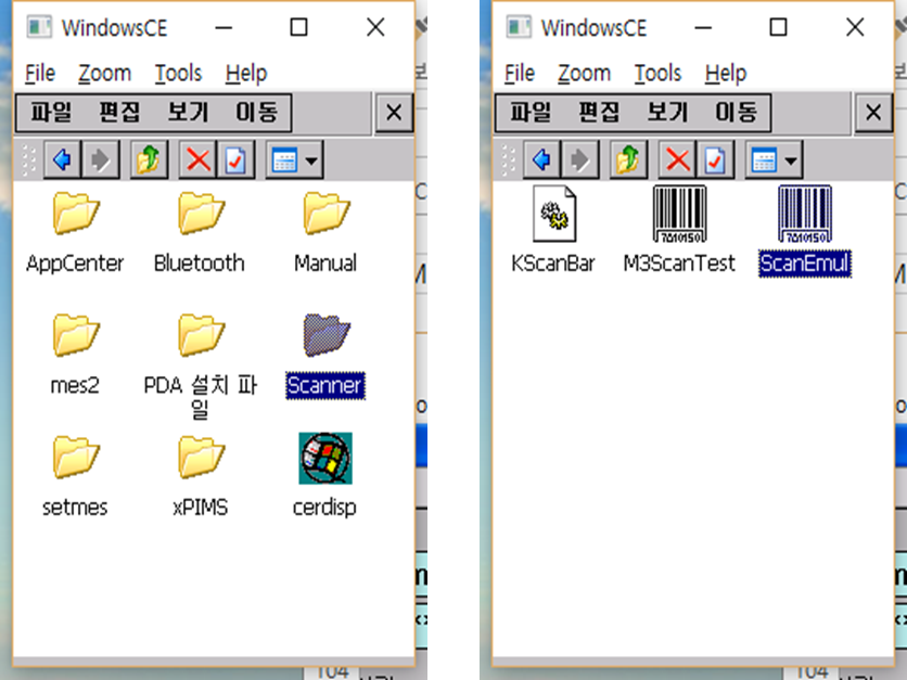 # 바코드가 사용가능이 아니면 Flash Disk의 Scanner에서 Scanemul을 실행해야 함