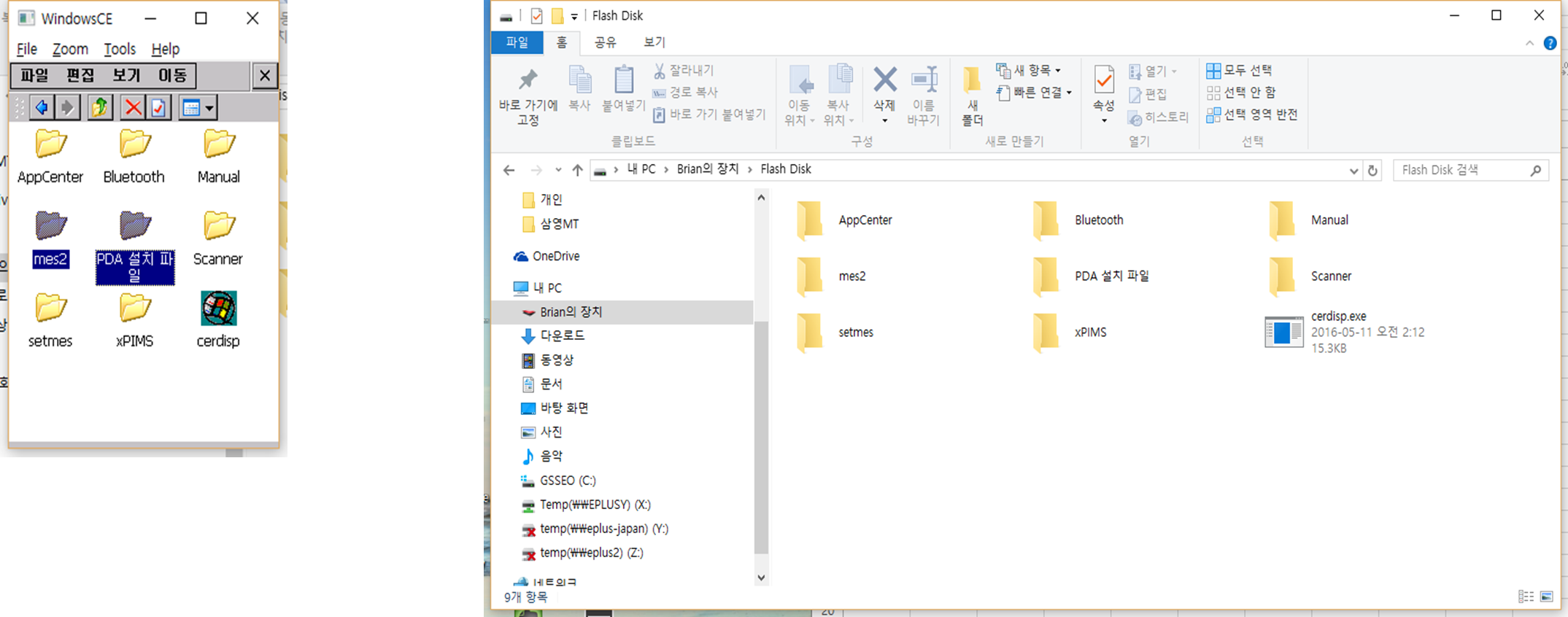 # MES2와 PDA 설치 파일을 PDA로 복사(Flash DISK)
