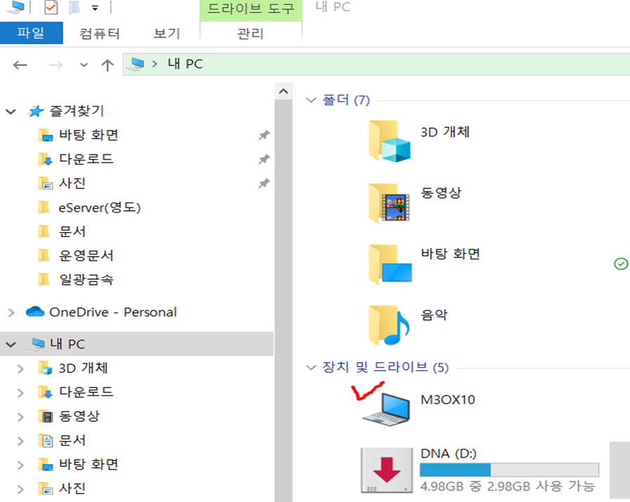 # 바탕화면 정리 (내 장치 외는 휴지통으로)