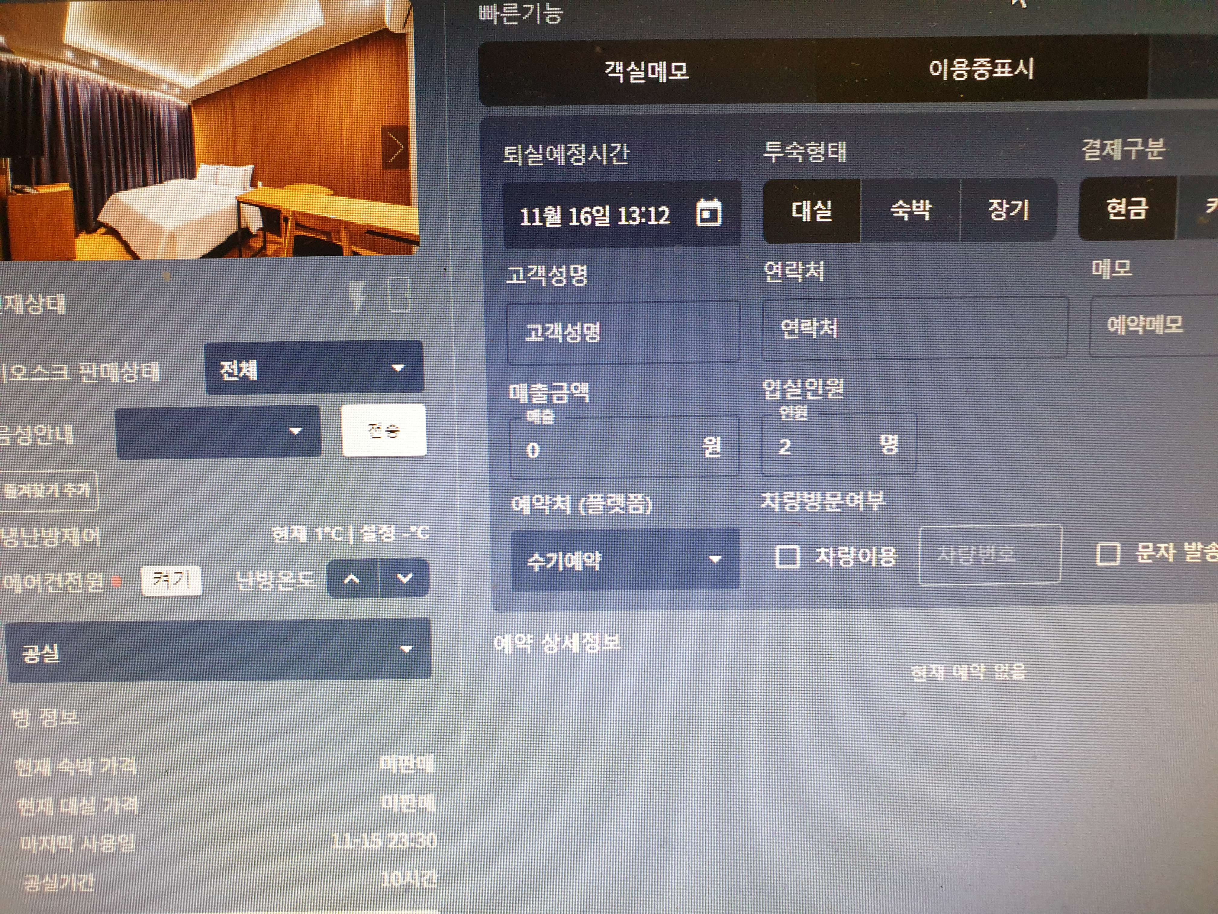 빠른 입실 및 빠른 대실 예약분 공실 확인 후 룸 배정